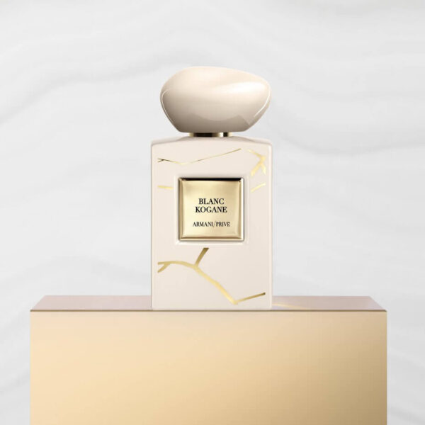 En 2024, Giorgio Armani présente Blanc Kogane et Noir Kogane, un duo raffiné composé des derniers parfums à rejoindre la collection Armani/Privé Haute Couture. Décliné respectivement dans des tons d’ivoire et de noir intense, chaque flacon est orné de motifs dorés rendant hommage au Kintsugi, l’art potier ancestral.